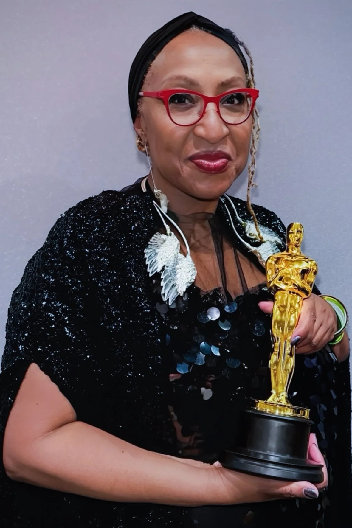 LLUMIN by Angel Pai, worn by Lisa Cortes at the 2026 Academy Awards. Her documentary All the Empty Rooms won the Oscar for Best Documentary Feature.